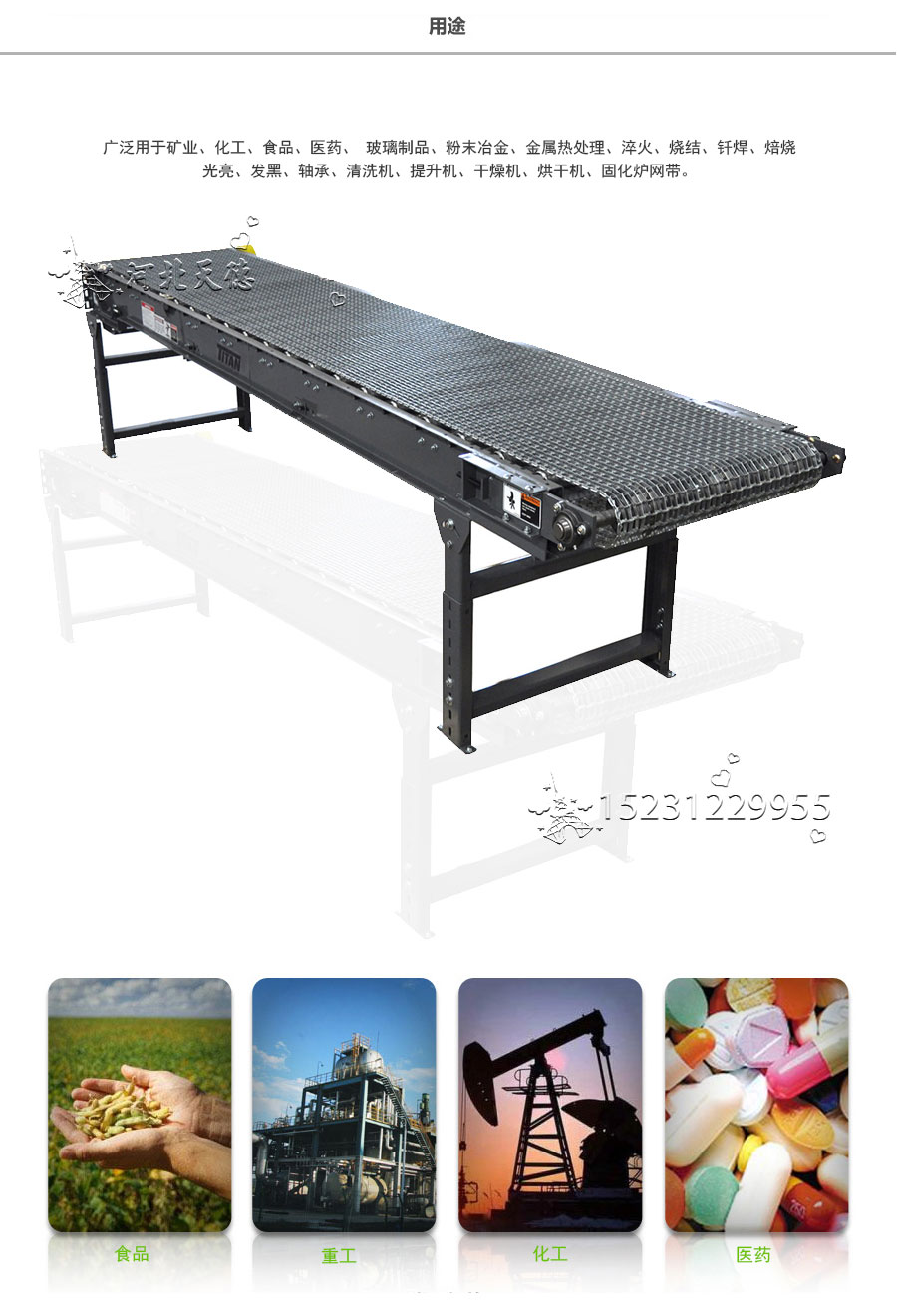 長城網(wǎng)帶應(yīng)用:做洗滌、干燥、冷 卻、熱處理的輸送線